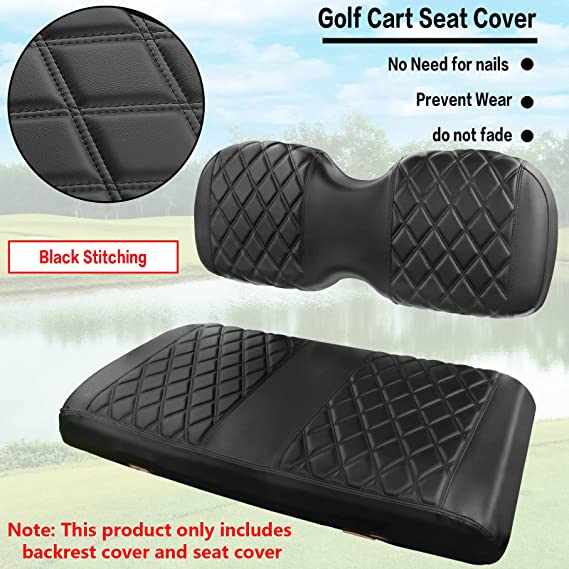 - 【IC-L Diamond Seat Cover Set】This product includes 1 seat cover and 1 backrest cover, the golf cart vinyl seat cover is very stable and does not shift easily.The club cart front seat kit is stitched with black thread in a diamond pattern patchwork, filled with breathable foam, soft and non-slip, adding a touch of style and luxury to your golf cart.