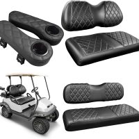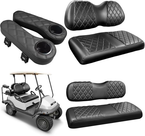 Front&Rear Seat Cover&Flip-Up Armrest Kit with Cup Holder for 1″ Square Tube Club Car Precedent Golf Cart Standard Seat Cushion